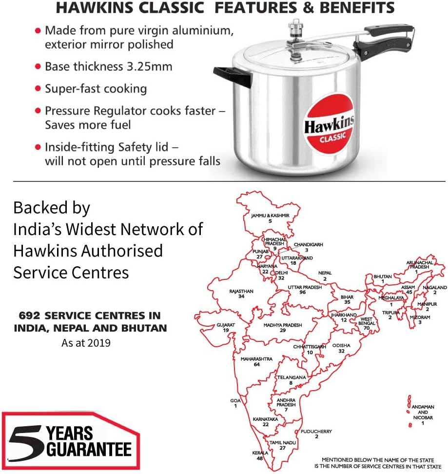 HAWKINS CL8T Klassisches Aluminium Schnellkochtopf, 8 liters, silber 8-Liter Silber, 8-Liter Silber