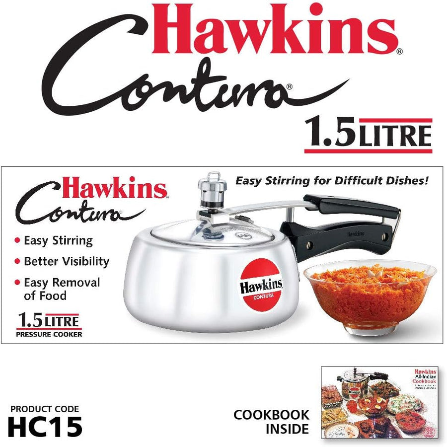 HAWKINS HC15 Contura Schnellkochtopf, 1,5 l, klein, Aluminium, 1.5 liters, Silber 1.5 litre, 1.5 lit