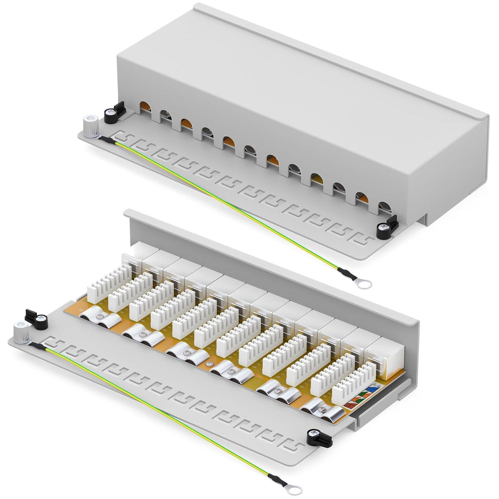 HB-DIGITAL 12-Port Cat 6a LSA Patchpanel, Patchfeld, geschirmt, Weiss Verteilerfeld Cat.6a (500 MHz)