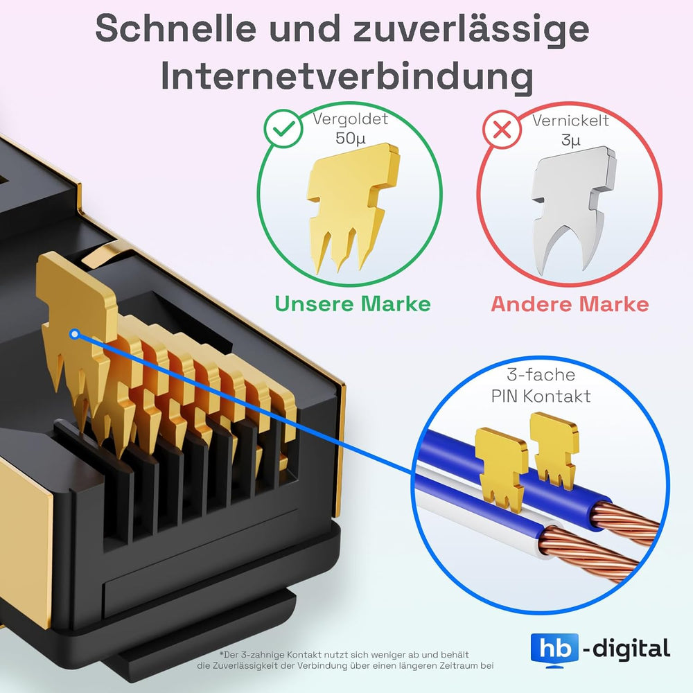 HB-DIGITAL 25m cat 7 Netzwerkkabel LAN Verlegekabel Cable - Übertragungsgeschwindigkeit bis zu 10 Gb