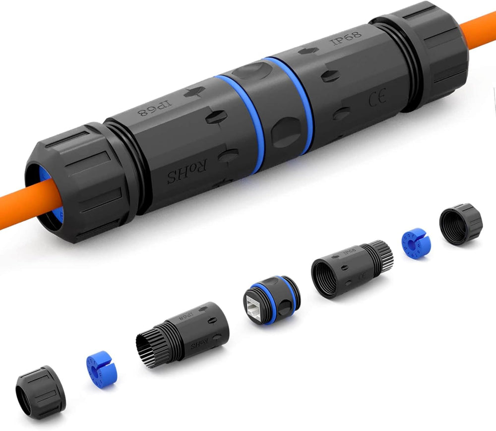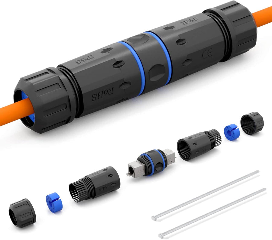hb-digital 2X RJ45 Patchkabelverbinder CAT. 7 Outdoor IP68 Wasserdicht Ethernet Kupplung Netzwerkkab