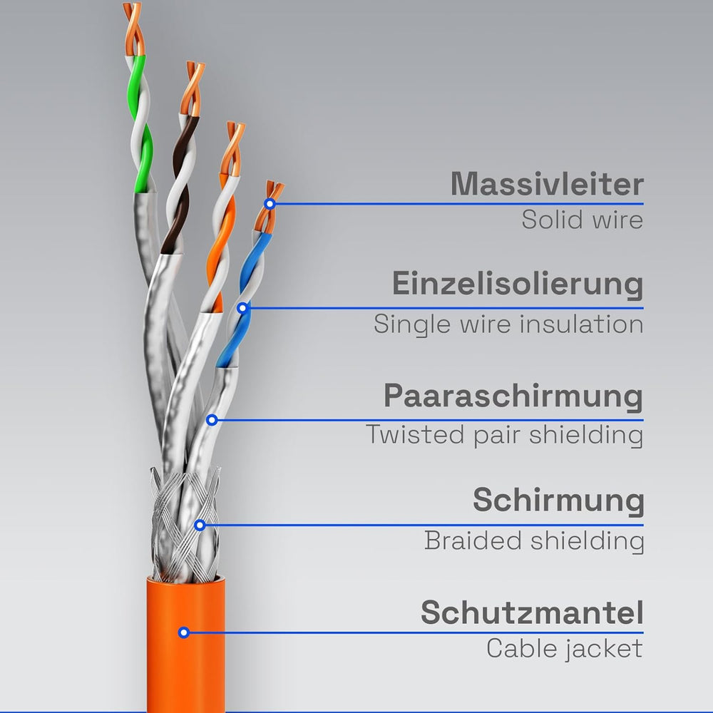 HB-DIGITAL 100m CAT.7a Netzwerkkabel Orange Verlegekabel Ethernet LAN AWG23 Reines Kupfer S/FTP PiMF