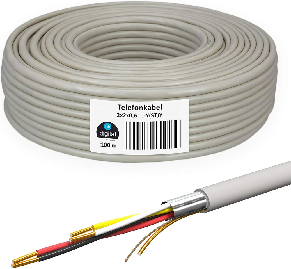 HB Digital Telefonkabel 100m 2 x 2 x 0,6 J-Y(ST) Y Verlegekabel JYSTY 4 Adern Telefonleitung 100m 2