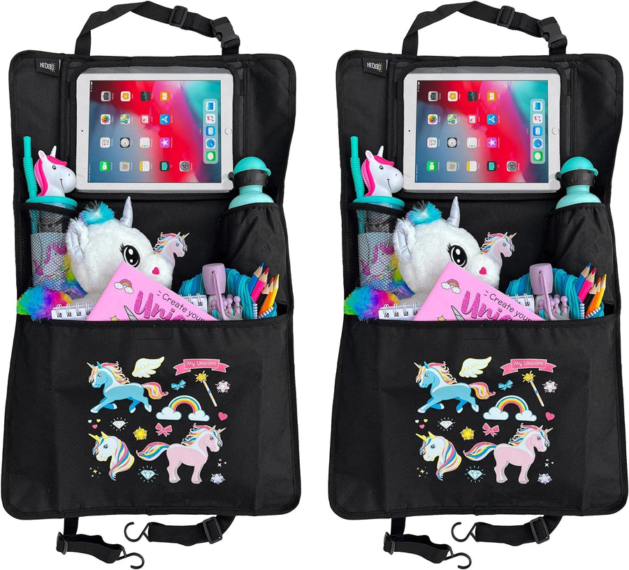 HECKBO 2x Kinder Auto Organizer mit verstellbarer Tablet Tasche mit Touch Folie für bis 20" – Monste