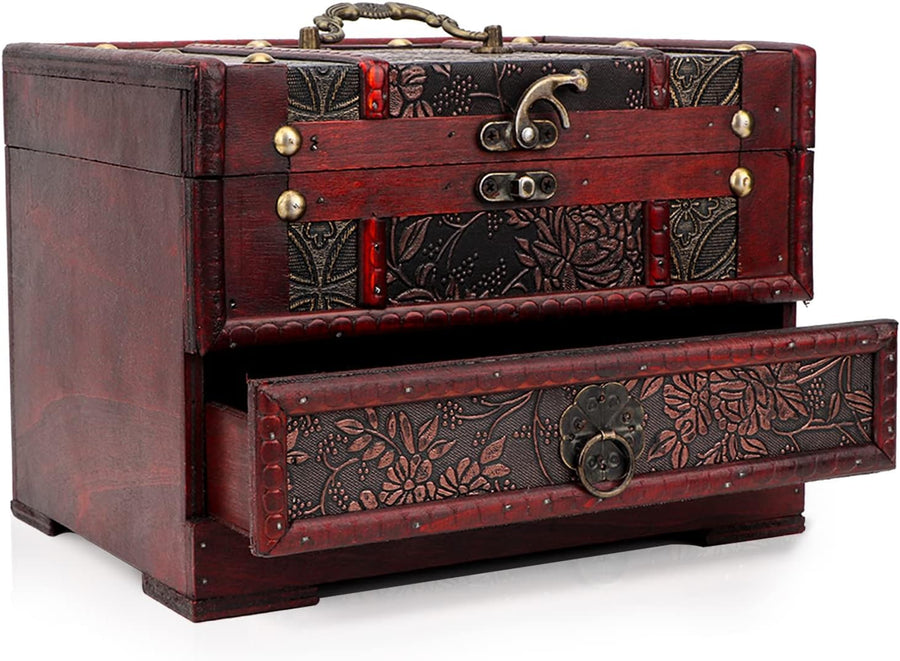 Vintage Handgefertigte Aufbewahrungsbox, Retro-Schmuckkästchen/Aufbewahrungsbox Aus Holz Mit Spiegel