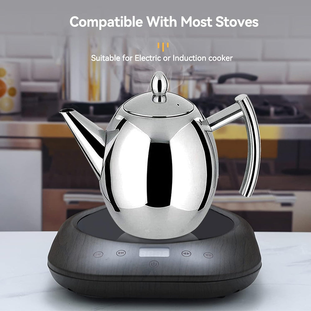 1L Edelstahl Teekanne Silber, Teekanne mit Aufguss für losen Tee Kaffeekanne Teekessel für Herdplatt