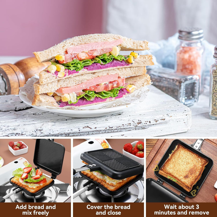 Toastpfanne, Wendepfanne Breakfast Sandwich Maker, Geröstetes Sandwich-Eisen-Maker, Doppelseitige Br