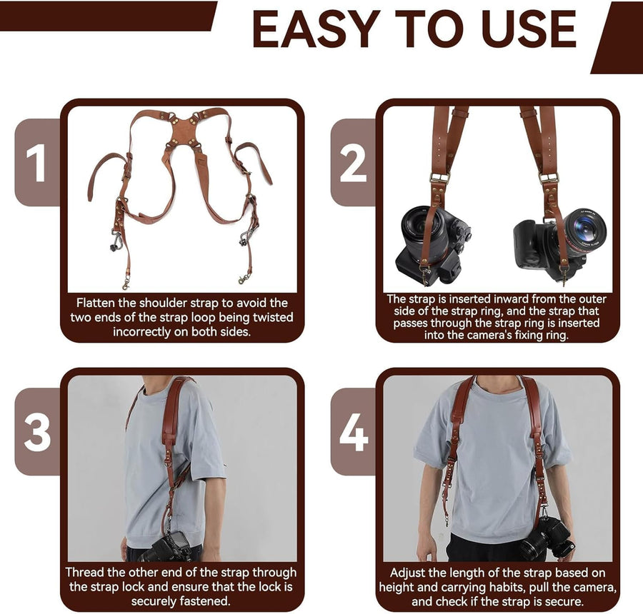 HERCHR Doppelter Kameragurt, Kameragurt Zubehör Für 2 Kameras, Vintage Multi Gear-Kameragurt Für DSL