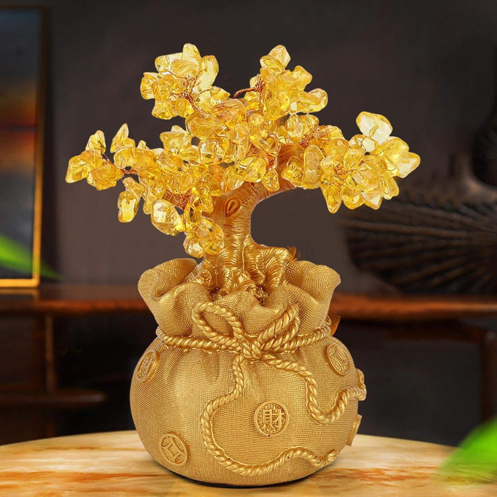 HERCHR Gold Geld Baum, Feng Shui Baum Citrin Geld Baum Harz Glücksbaum Bonsai Statue Office Home Dek
