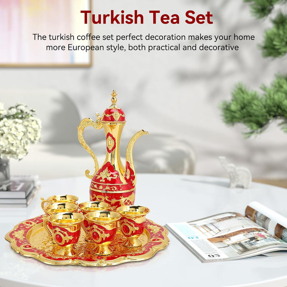 Türkisches Teeset, Metallteekannenset mit 6 Kaffeetassen und Teetablett, Kunsthandwerkshochzeitsgesc