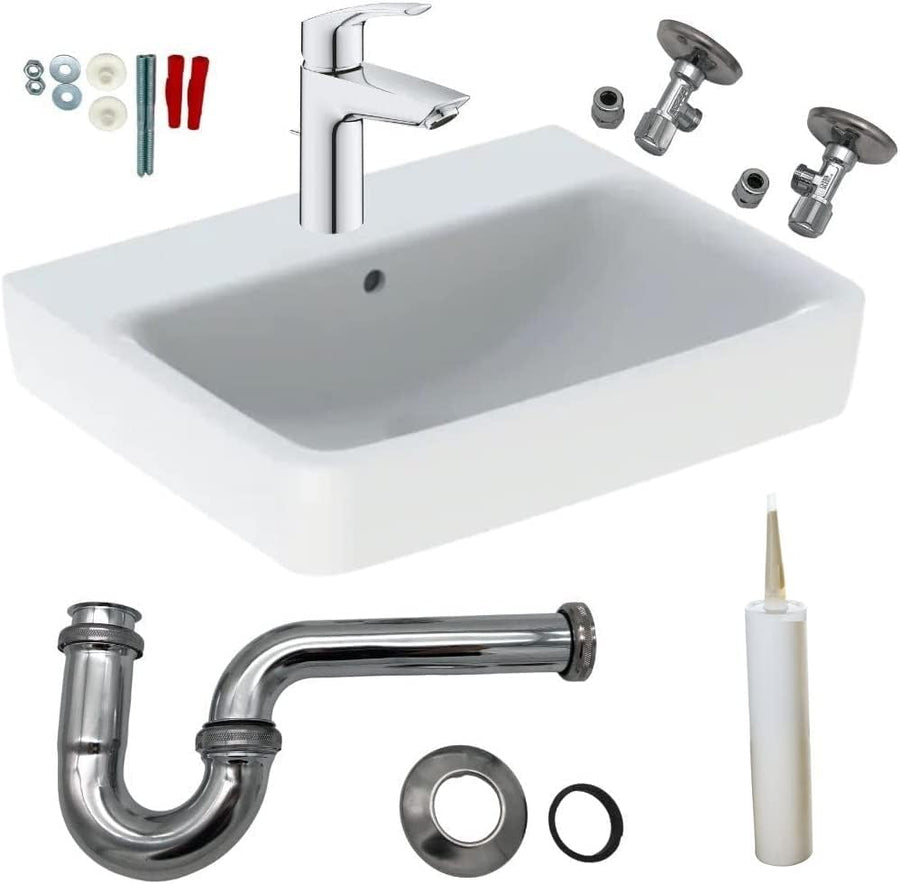 Geberit Waschtisch Waschbecken 65 cm Armatur Siphon Eckventil Komplettset