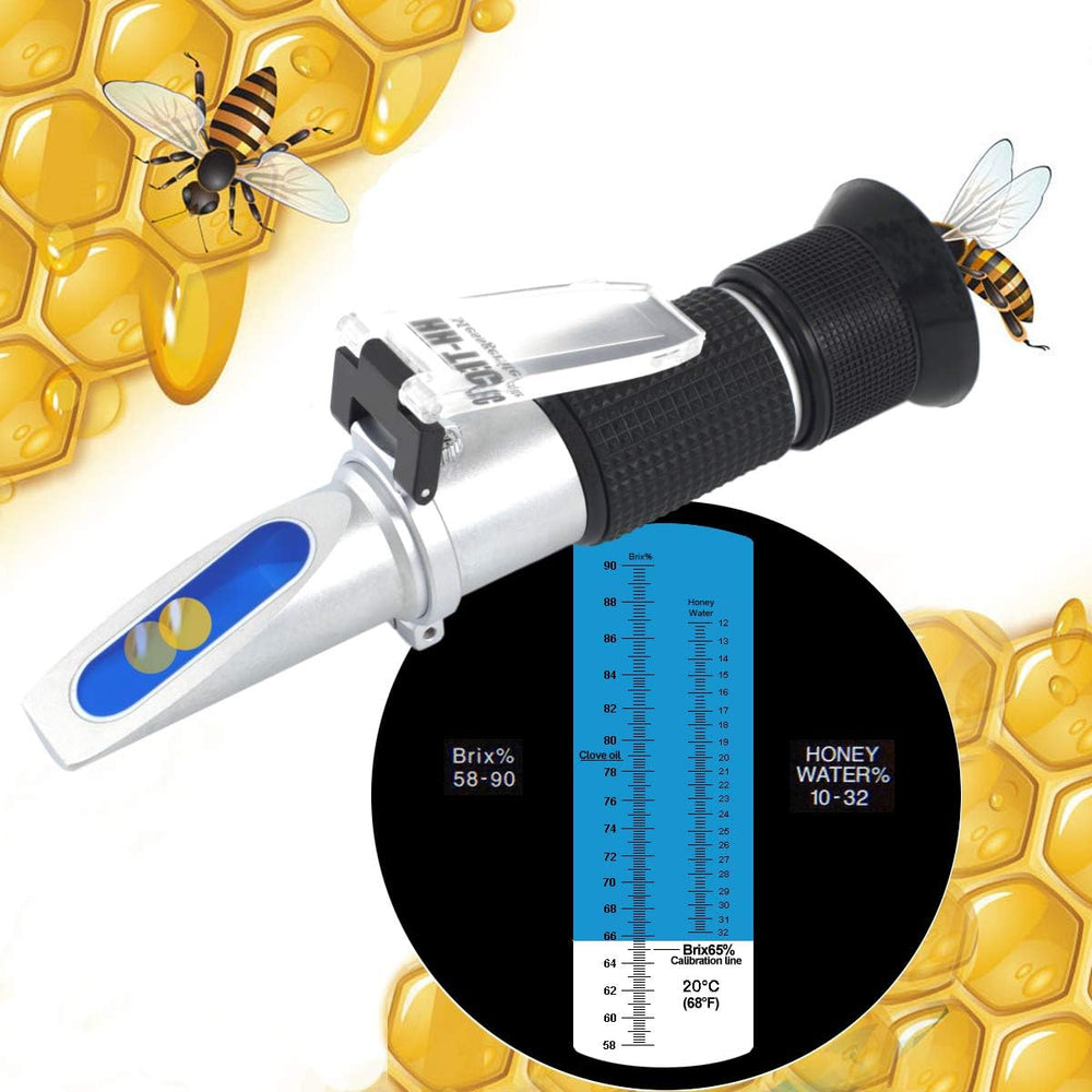 HHTEC Imker Refraktometer Honig 58-90% Brix 10-32% Wasser Feucht Handrefraktometer für Honig Pflanze
