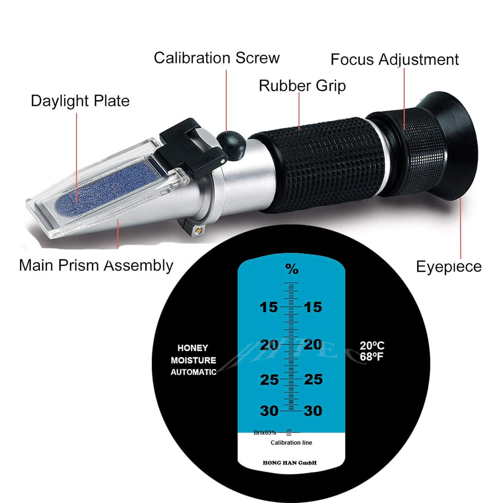 HHTEC Imker Refraktometer Honig 12-30% Wasser Feucht Handrefraktometer für Honig 5 Fach verbesserte