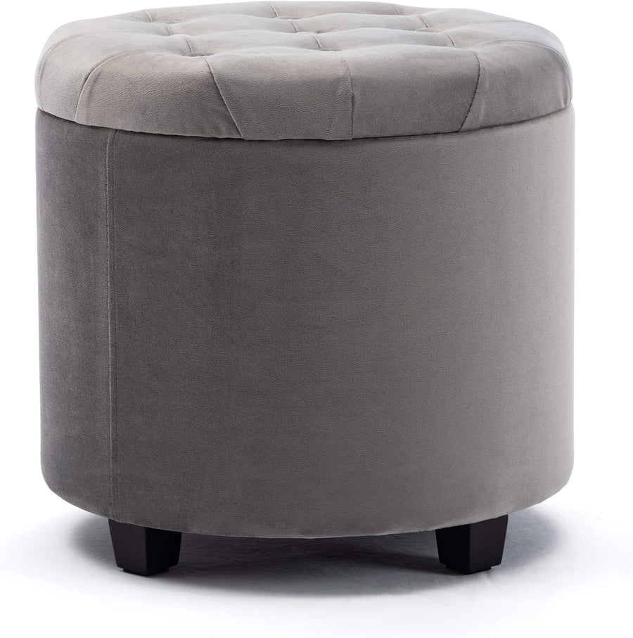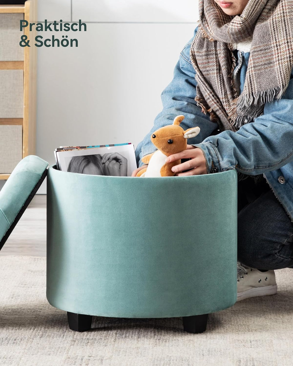 HNNHOME Sitzhocker mit Stauraum, Sitz rund mit Deckel, Sitztruhe, Fussbank Truhen Aufbewahrungsbox,