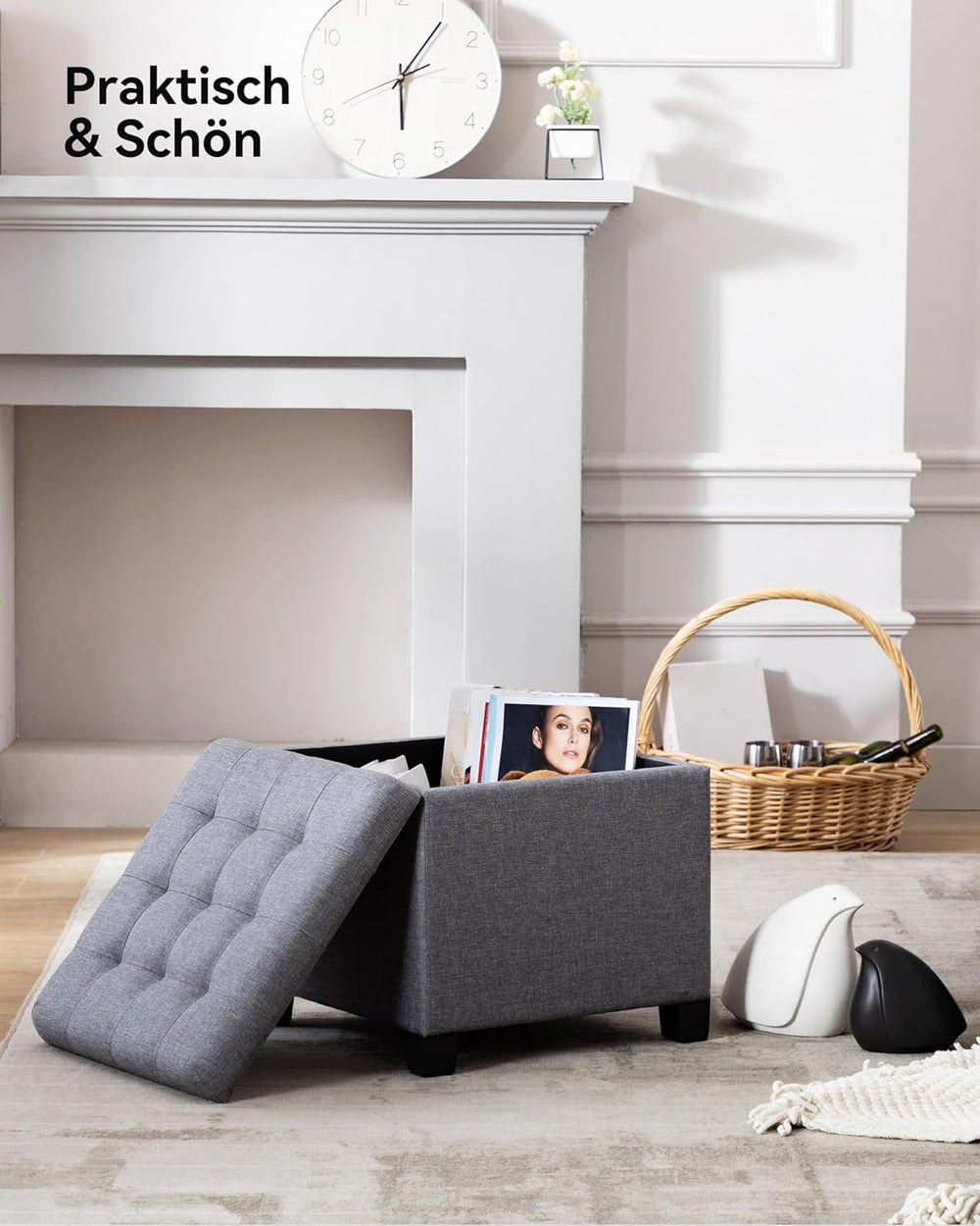 HNNHOME Sitzhocker mit Stauraum, Sitzwürfel mit Deckel, Sitztruhe, Fussbank Truhen Aufbewahrungsbox,