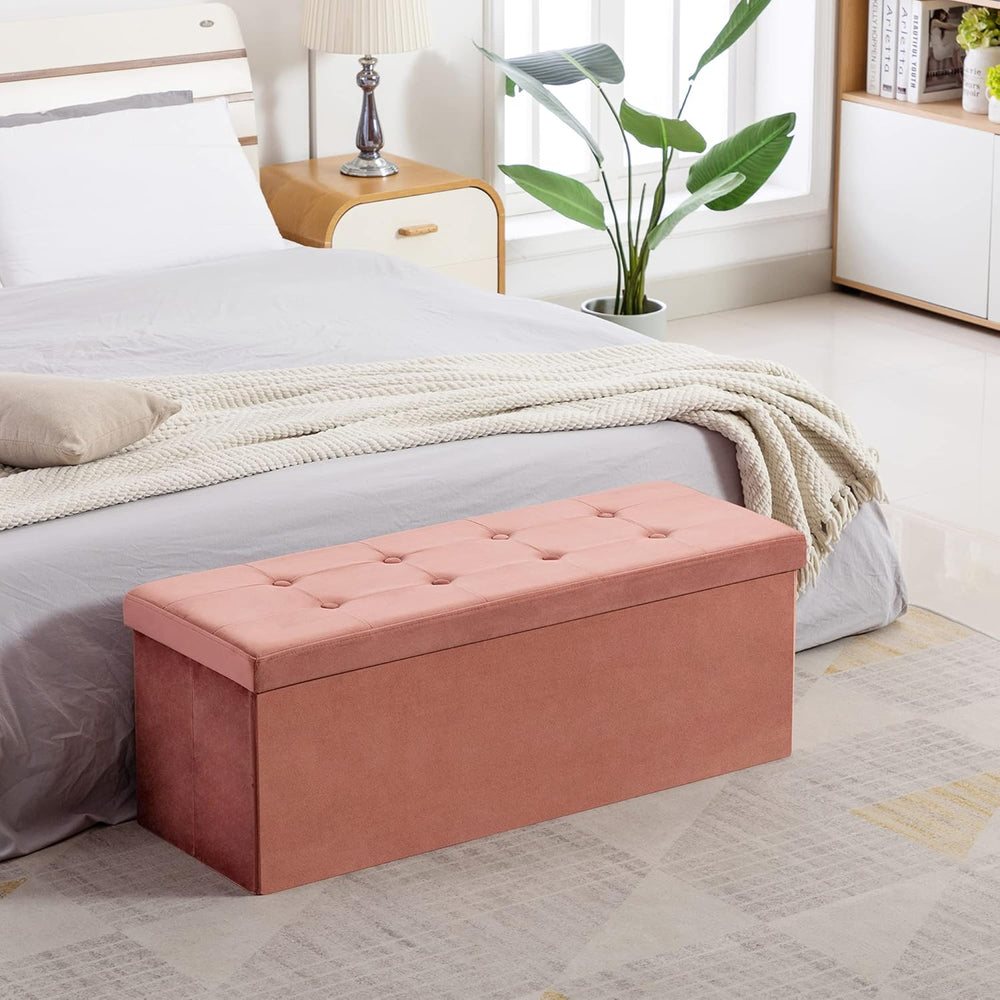 HNNHOME Samt-Bettbank, Sitzbank, Ottomane, Spielzeugtruhe mit Deckel, zusammenklappbare Aufbewahrung