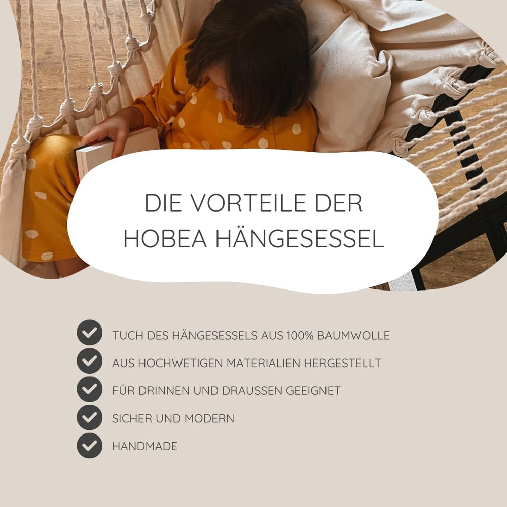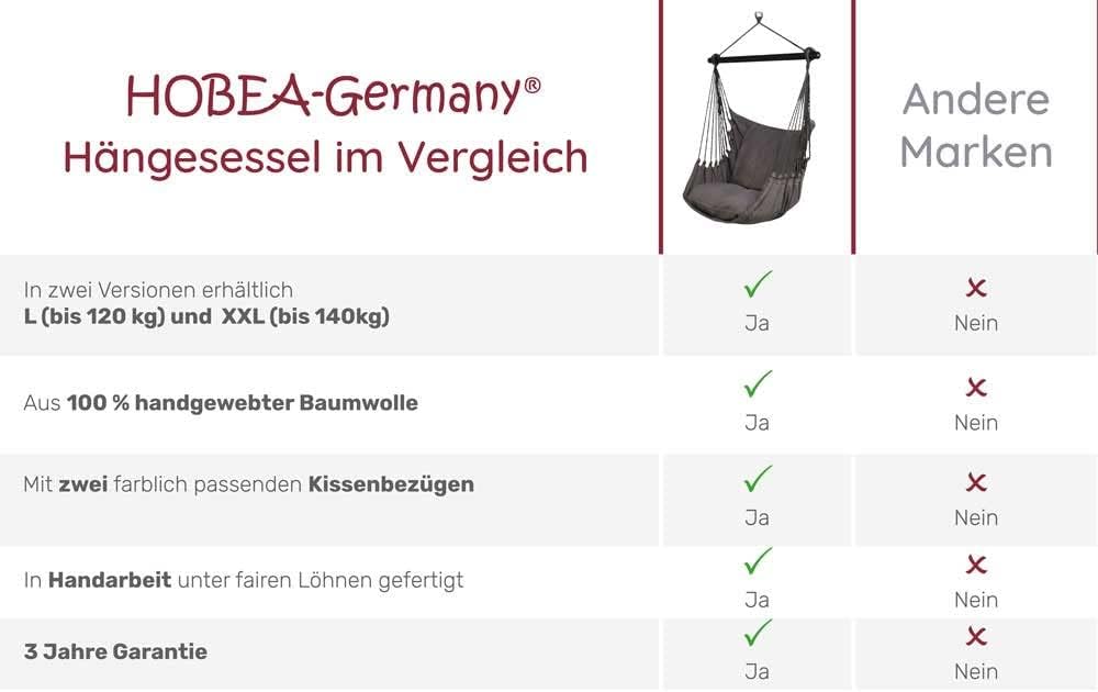 HOBEA-Germany Hängesessel Hängestuhl Hängesitz mit 2 Kissenhüllen :L (bis 120kg belastbar), Farben H