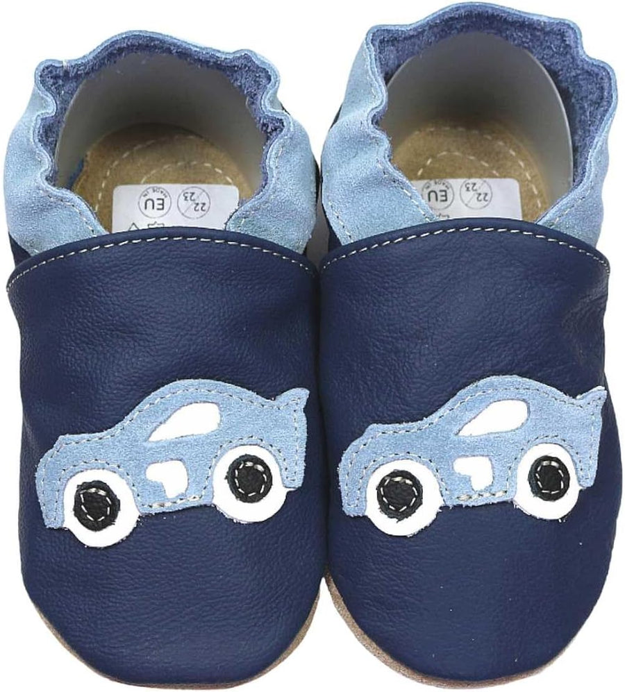 HOBEA-Germany Kitaschuhe Safestep, Kinderhausschuhe, Lederschuhe 28/29 EU Rennauto Dunkelblau, 28/29