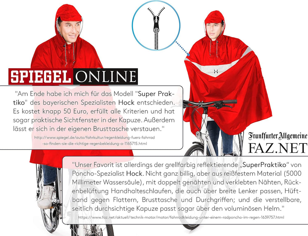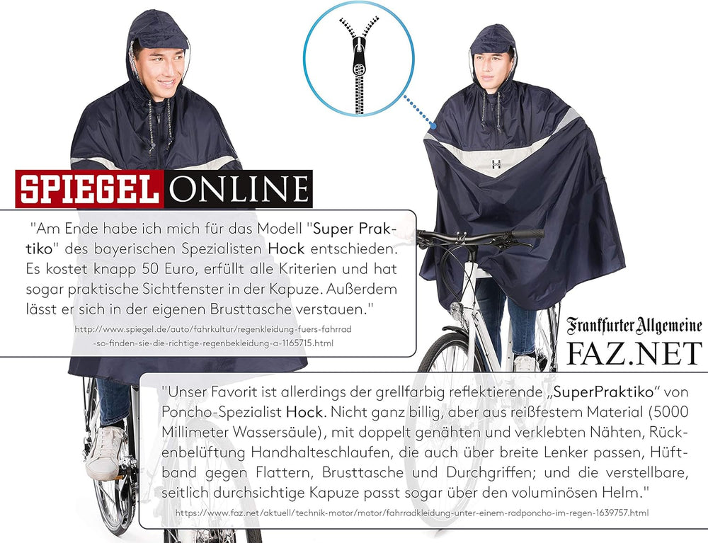 HOCK - DAS ORIGINAL und echter TESTSIEGER* - Fahrrad Regenponcho mit Kapuze - Fahrradponcho Wasserdi