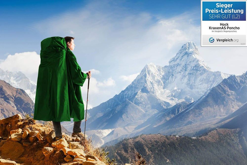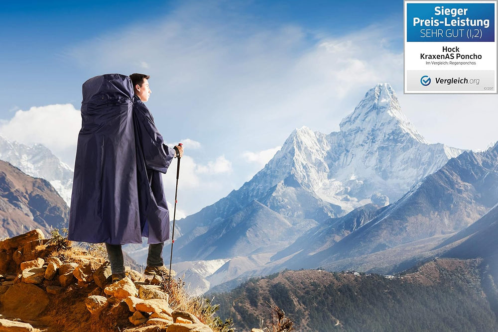 HOCK Regenponcho Wandern 'Kraxen AS' mit Rucksack Regenschutz – Herren & Damen Regencape Atmungsakti
