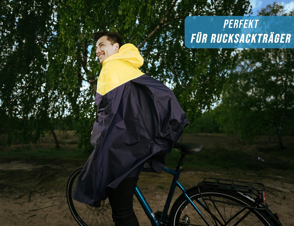 HOCK Fahrrad Regenponcho mit praktischer Rucksackfalte – Fahrradponcho 100% Wasserdicht mit Reflekto
