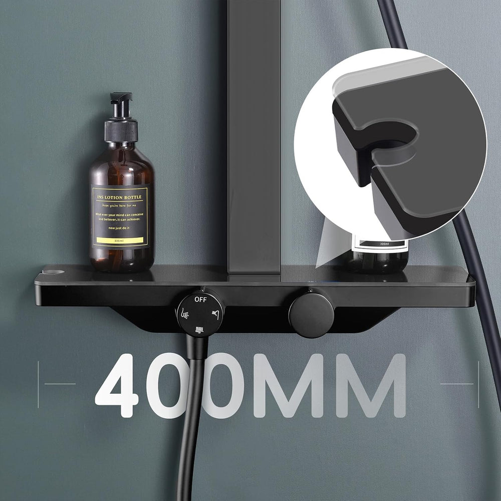 HOMELODY Duschsystem mit Thermostat Schwarz und Glasablage 40x18 CM - Duscharmatur Komplettset mit K