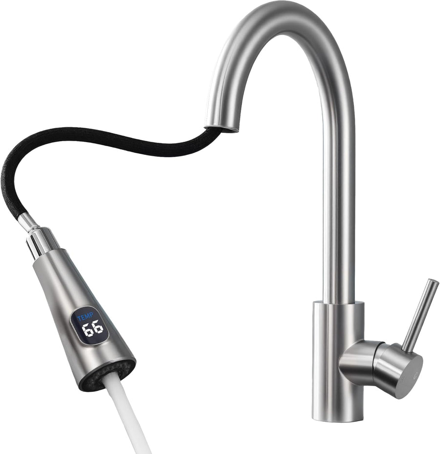 HOMELODY Wasserhahn Küche mit LED-Temperaturanzeige, Ausziehbare Hochdruck Küchenarmatur 360° drehba