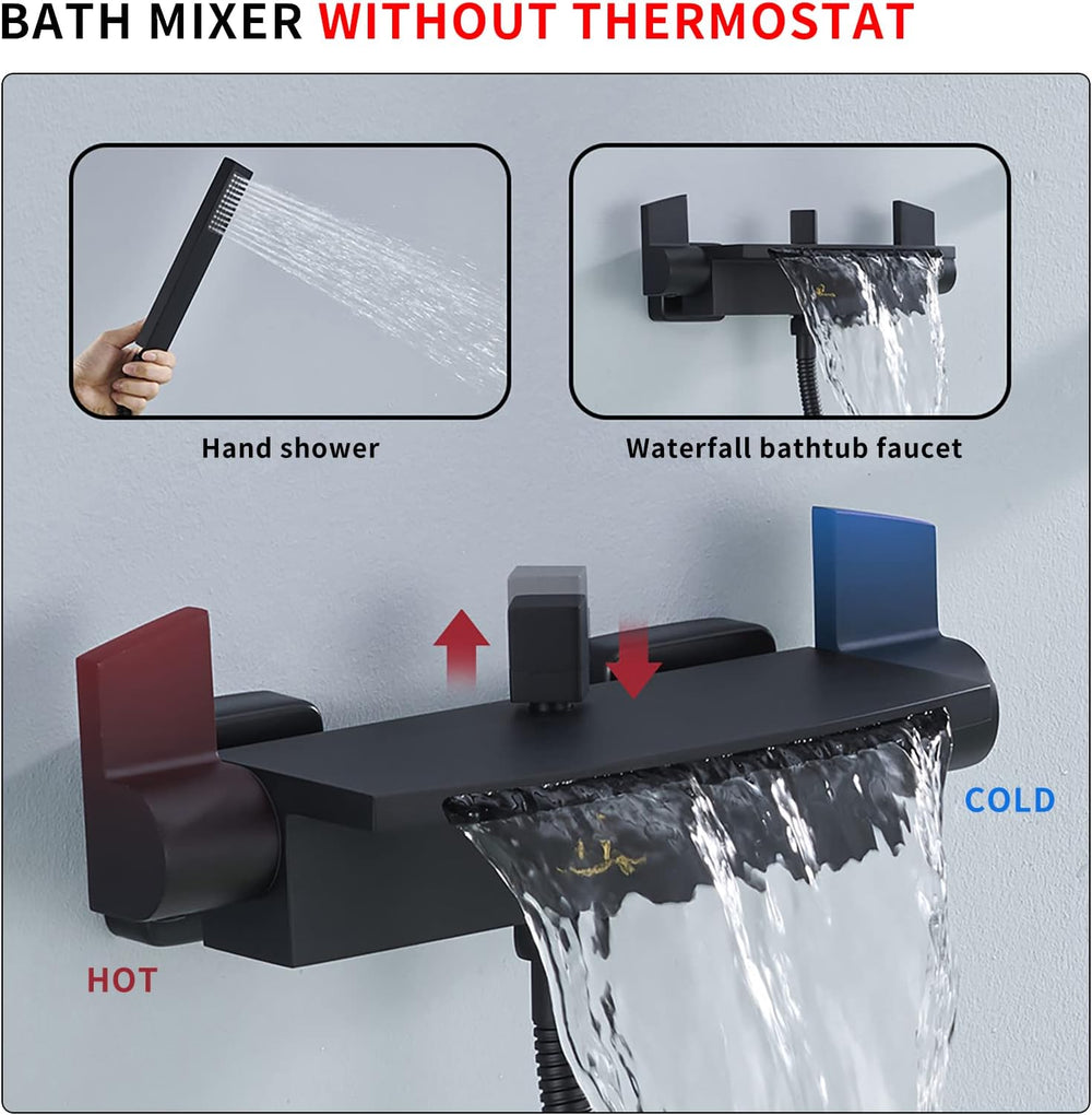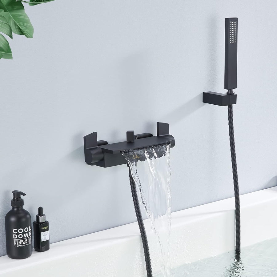 HOMELODY Schwarz Badewannenarmatur Wasserfall Armatur Badewanne Mischbatterie mit Brause Wannenarmat