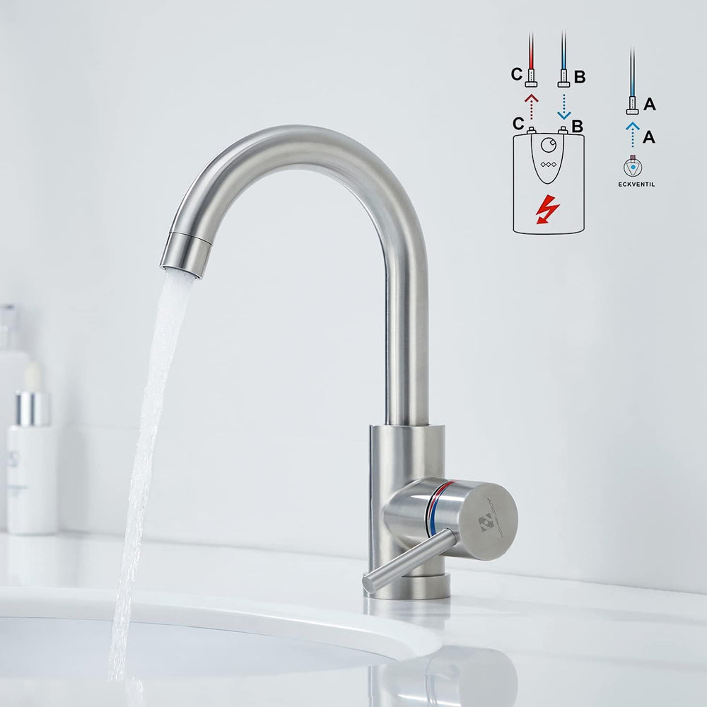 HOMELODY Waschtischarmatur Hoch mit 360°drehbarer Auslauf & Körper - Edelstahl Wasserhahn Bad mit 21