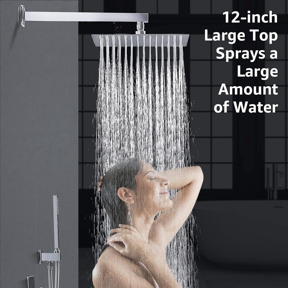 HOMELODY Regendusche Duschsystem mit Thermostat Unterputz Duscharmatur Eckig, Duschamaturenset Chrom