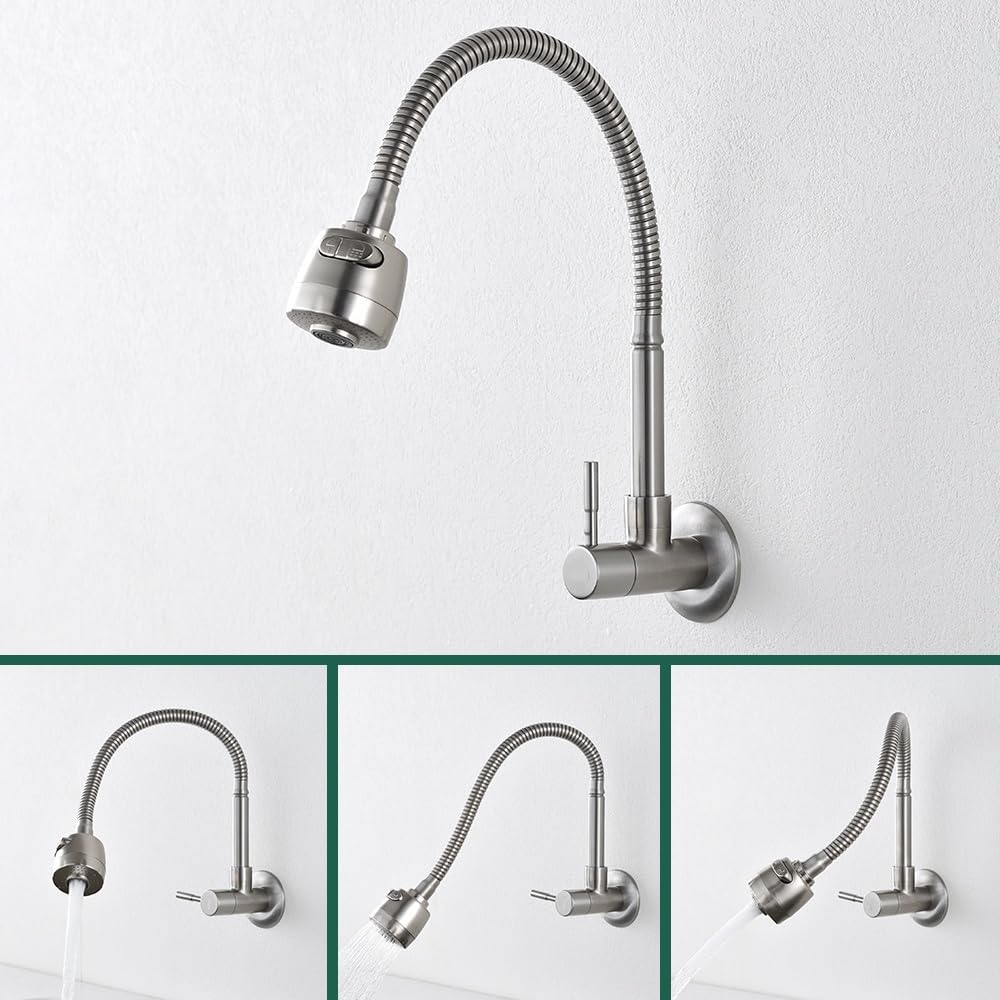 HOMELODY Wasserhahn Küche Wandmontage nur Kaltwasser Armatur Wandarmatur 360° Schwenkbar Doppelfunkt