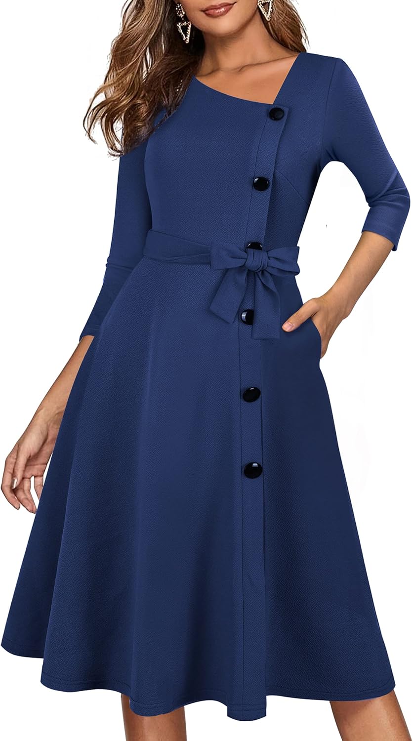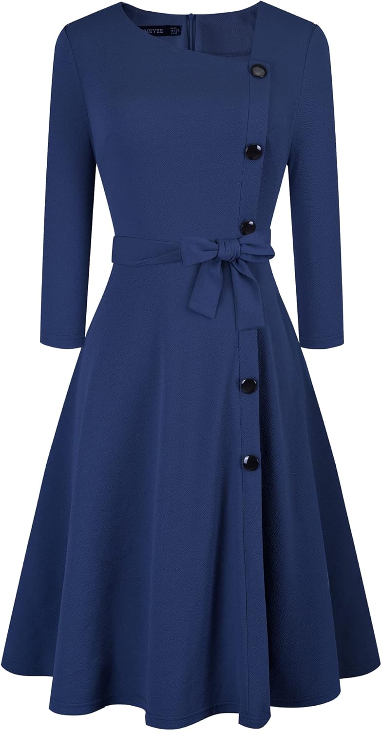 HOMEYEE Damen 3/4 Arm Business Stretch Kleid B237, Dunkelblau
