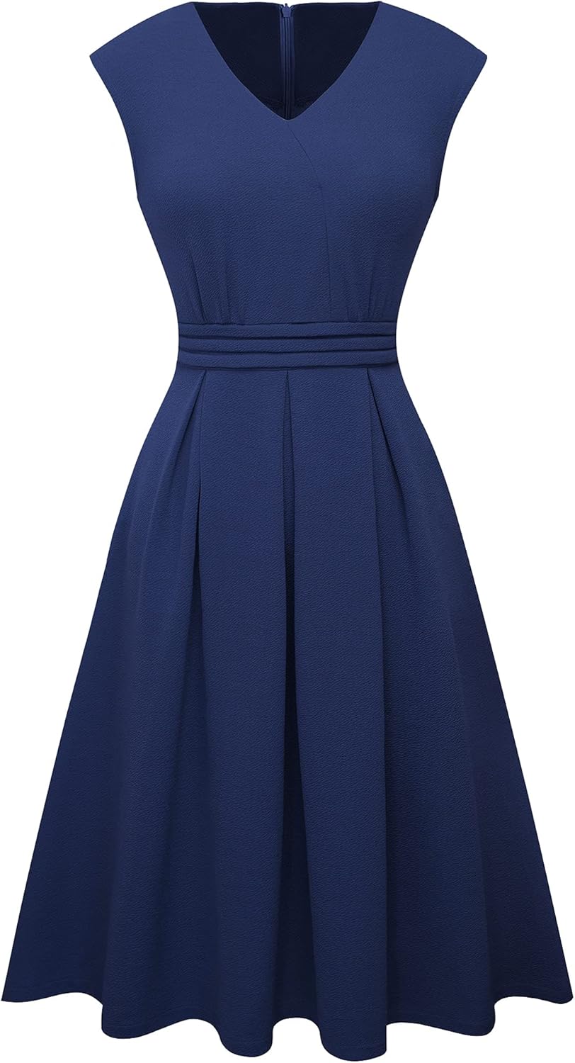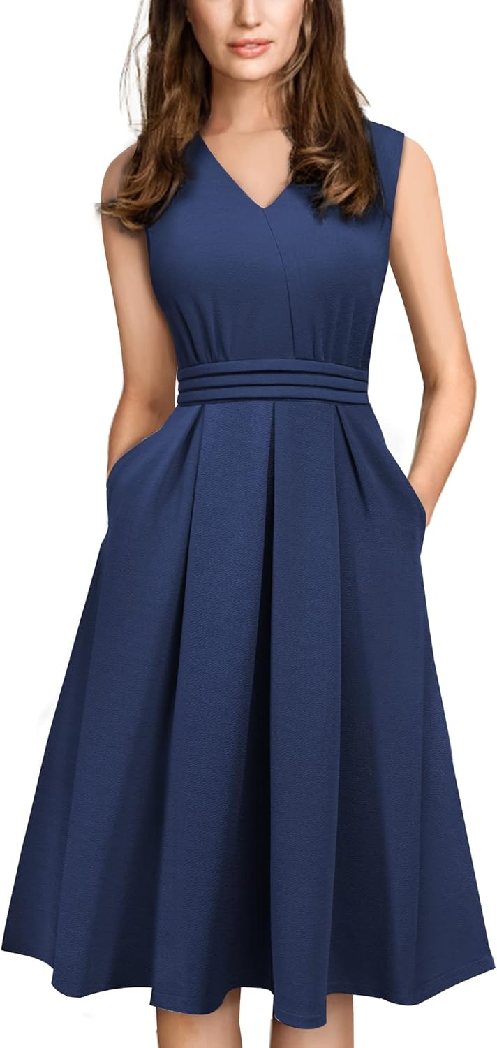 HOMEYEE Damen Vintage 50er Ärmellos Cocktail Retro mit Pocket Flared Kleid A196 S Dunkelblau, S Dunk