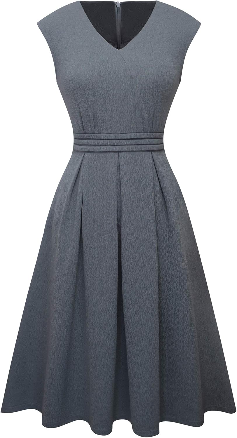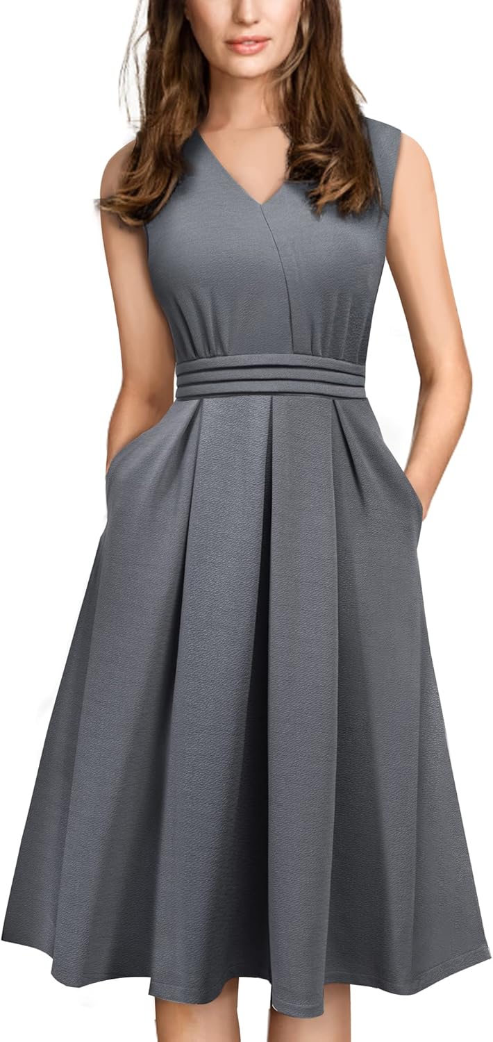 HOMEYEE Damen Vintage 50er Ärmellos Cocktail Retro mit Pocket Flared Kleid A196 S Grau, S Grau