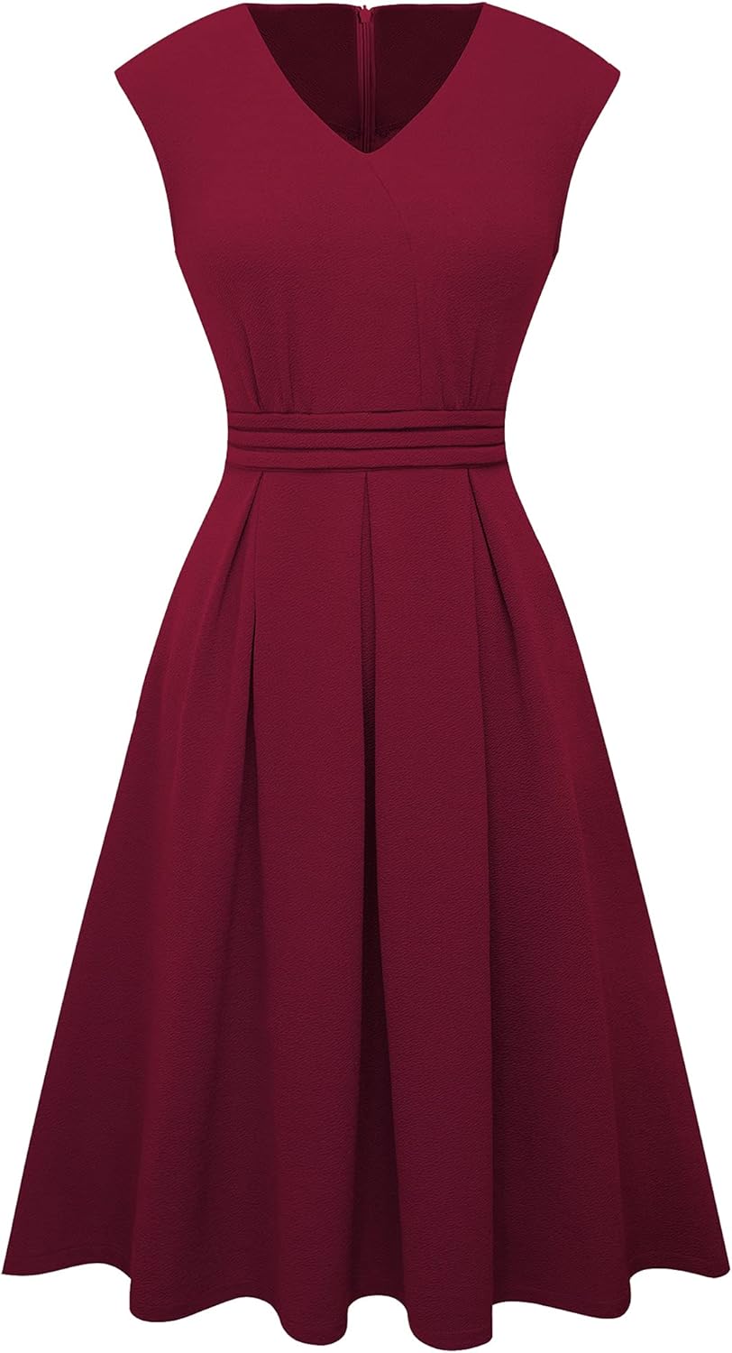 HOMEYEE Damen Vintage 50er Ärmellos Cocktail Retro mit Pocket Flared Kleid A196 S Dunkelrot, S Dunke