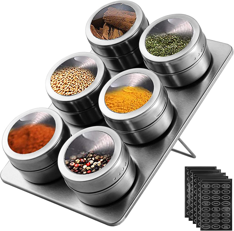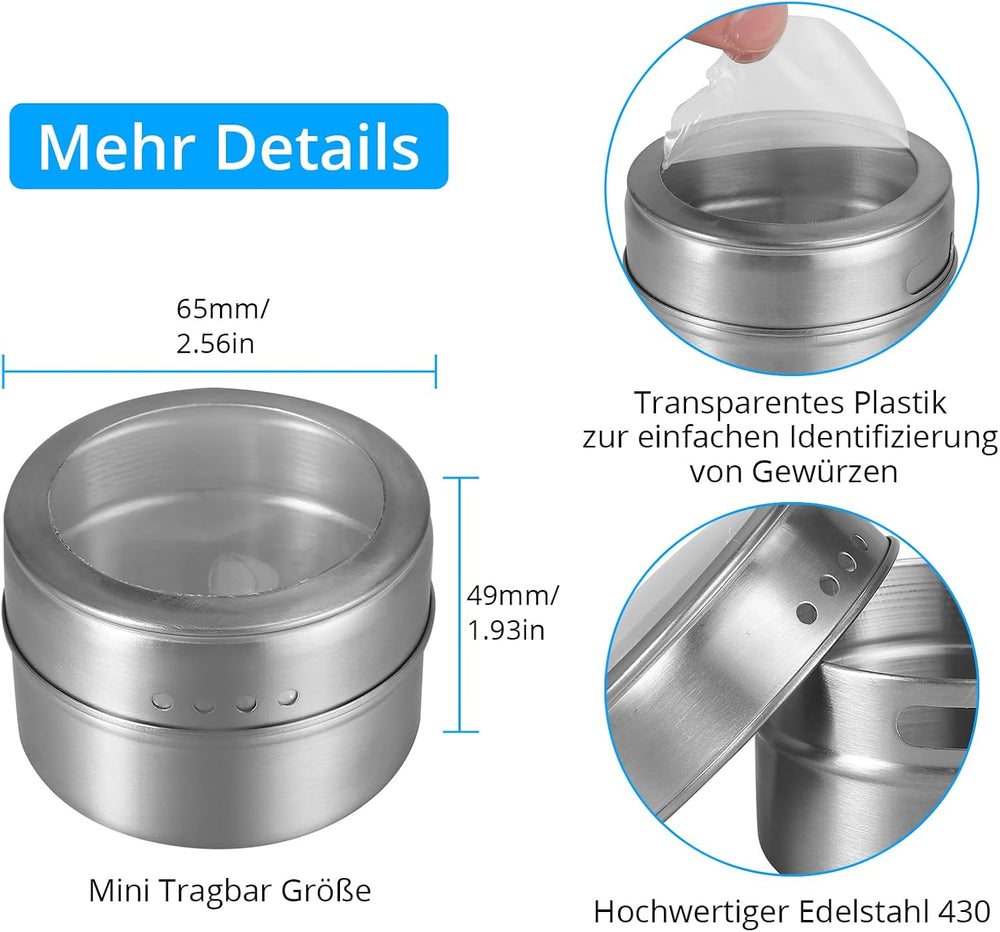 HOMGEN Gewürzdosen Magnetisch Edelstahl 6 Stück Gewürzgläser Set Magnet 100ml Gewürze Spice Jars mit