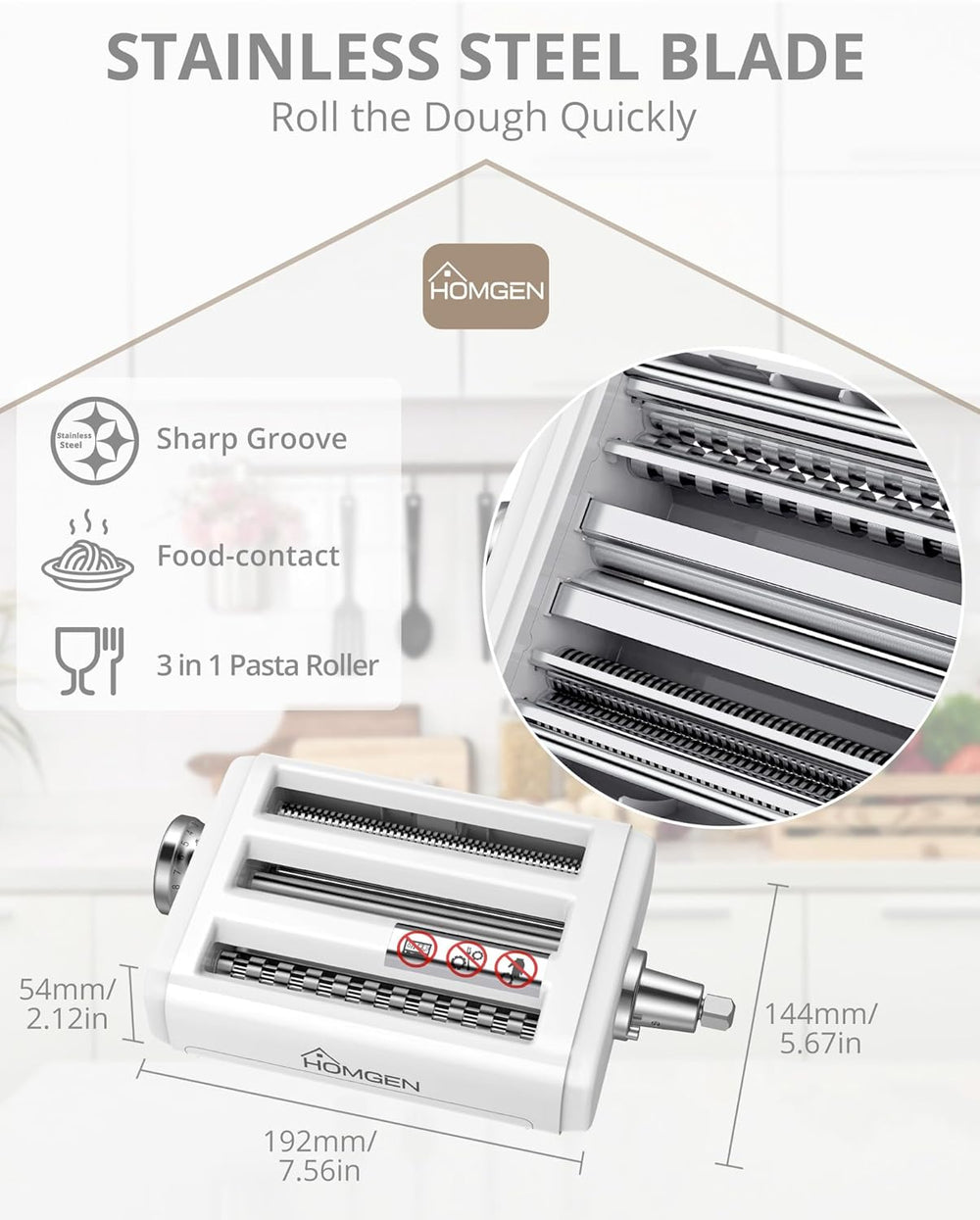 HOMGEN Kitchen Aid Nudelaufsatz Set 3-IN-1 Kitchenaid Nudelmaschine Pasta Spaghetti