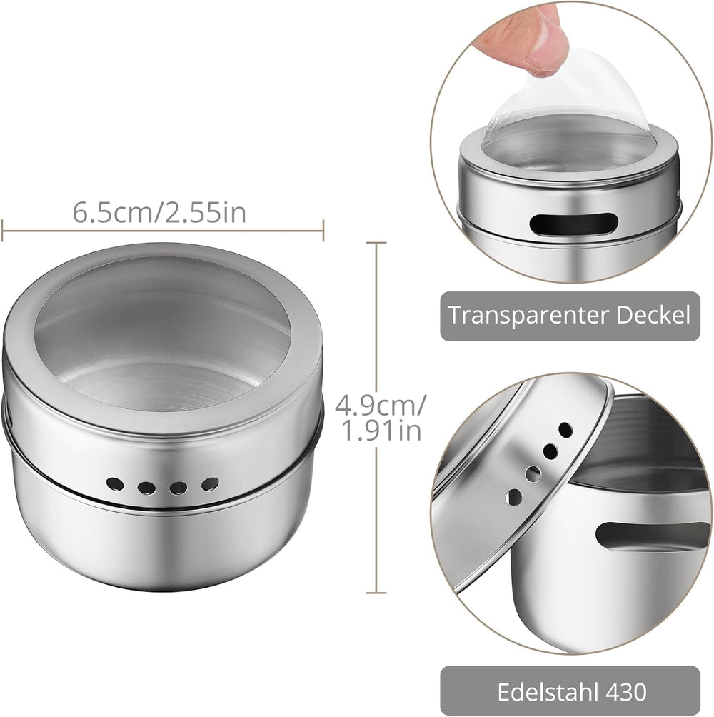 HOMGEN Gewürzdosen Magnetisch Edelstahl 12 Stück Gewürzgläser Set Magnet 100ml Gewürze Spice Jars mi