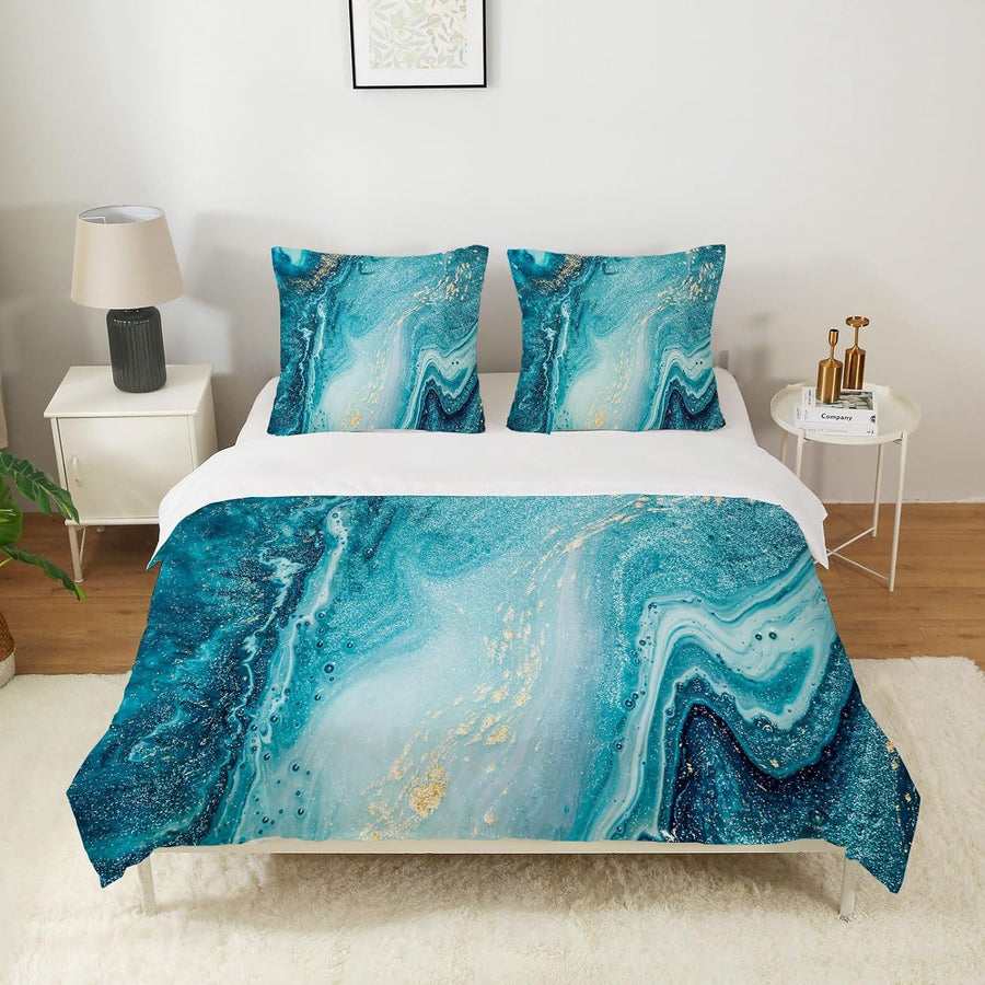 HOMHOMHA Marmor Bettwäsche 200x200 3D-Druck Bettwäsche-Set Blauer Marmor Bettbezug 200x200cm und 2 K