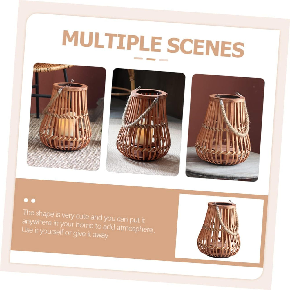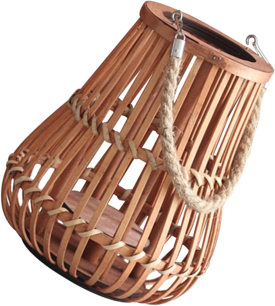 HOMSFOU Natürliche Bambuslaterne Rattan-led-kerzenlaterne Garten Laterne Anhänger Käfigschutz Für Gl