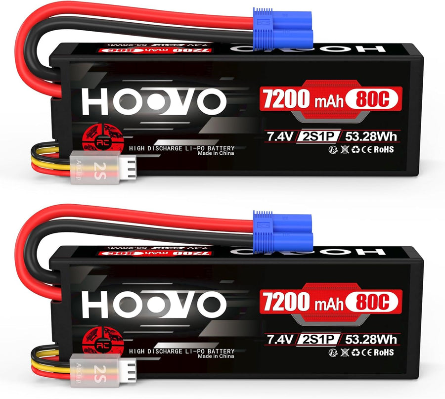 HOOVO 2S LiPo Akku 7,4V 7200mAh 80C RC Batterie Hardcase mit EC5 Stecker Batterie Ersatzakku für RC