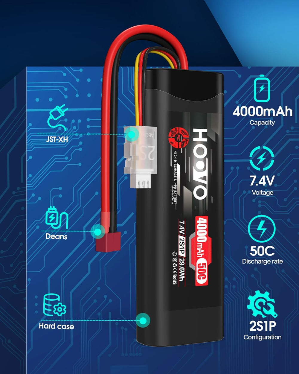 HOOVO 2S RC Batterie 7,4V 50C 4000mAh LiPo Akku mit Deans Stecker Batterie für RC Car RC Truck RC Bo