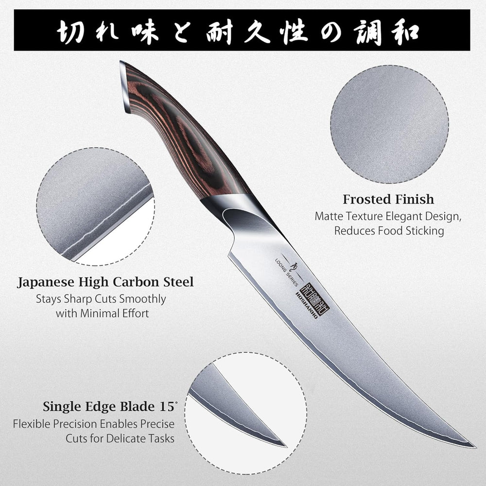 HOSHANHO Ausbeinmesser 15cm, Professionelles Filetiermesser aus Kohlenstoffreichem Edelstahl, Scharf