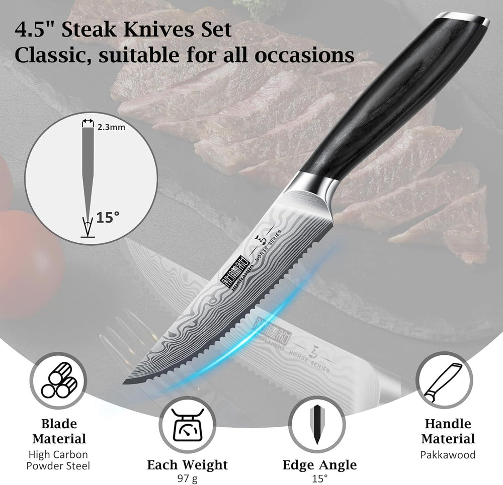 HOSHANHO 6-Teilig Steakmesser-Set, 11,5 cm Steakmesser Set mit Japanischer Wellenschliffklinge, Ultr