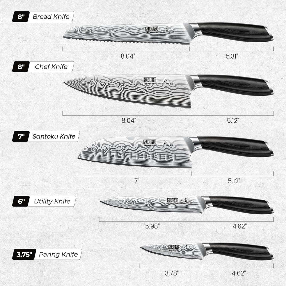 HOSHANHO 5-Teilig Messerset, Kochmesserset Professionelles Pulverstahl Chefmesser Set, Ultra Scharfe