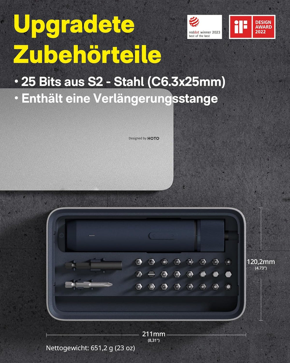 HOTO Akkuschrauber, Magnetischer Elektrischer Schraubendreher Set mit 3 Drehmomentstufen (1.5/3/4 Nm