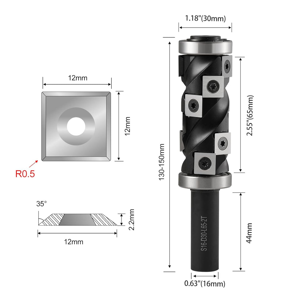HOZLY Wendeplatten Bündigfräser 16mm Schaft, 30mm Schnittdurchmesser Spiralnutfräser Kopierfräser fü