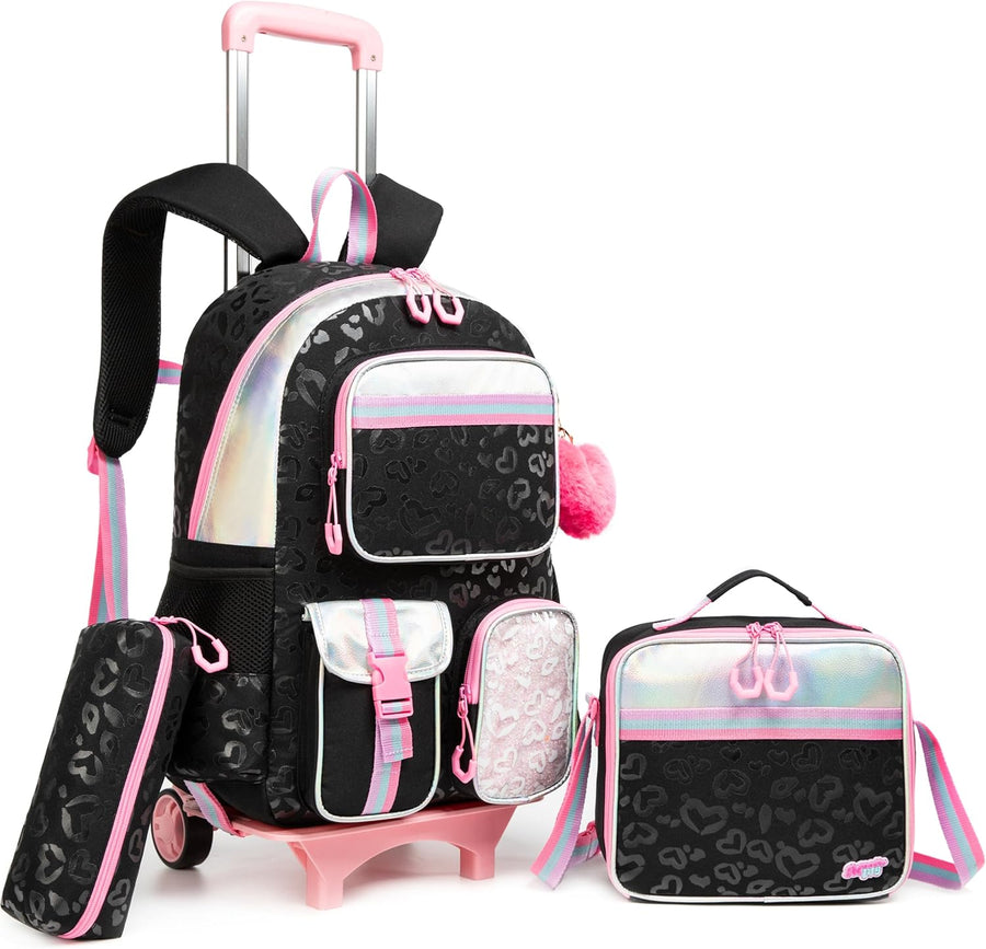 HTgroce Kinder Rollrucksack Schultaschen für Mädchen College Student Reise Reise Schule Kinder, Klei