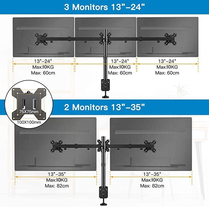 HUANUO Monitor Halterung für 3 Monitore 13-27 Zoll/für 2 Monitore 13-35 Zoll, Belastbarkeit max. 8Kg