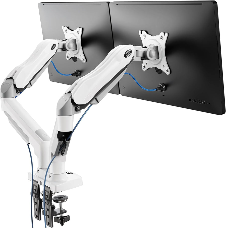 HUANUO Weiss Monitorhalterung Für 2 Monitore, Geeignet Für 13 Bis 32 Zoll Bildschirme, Höhenverstell